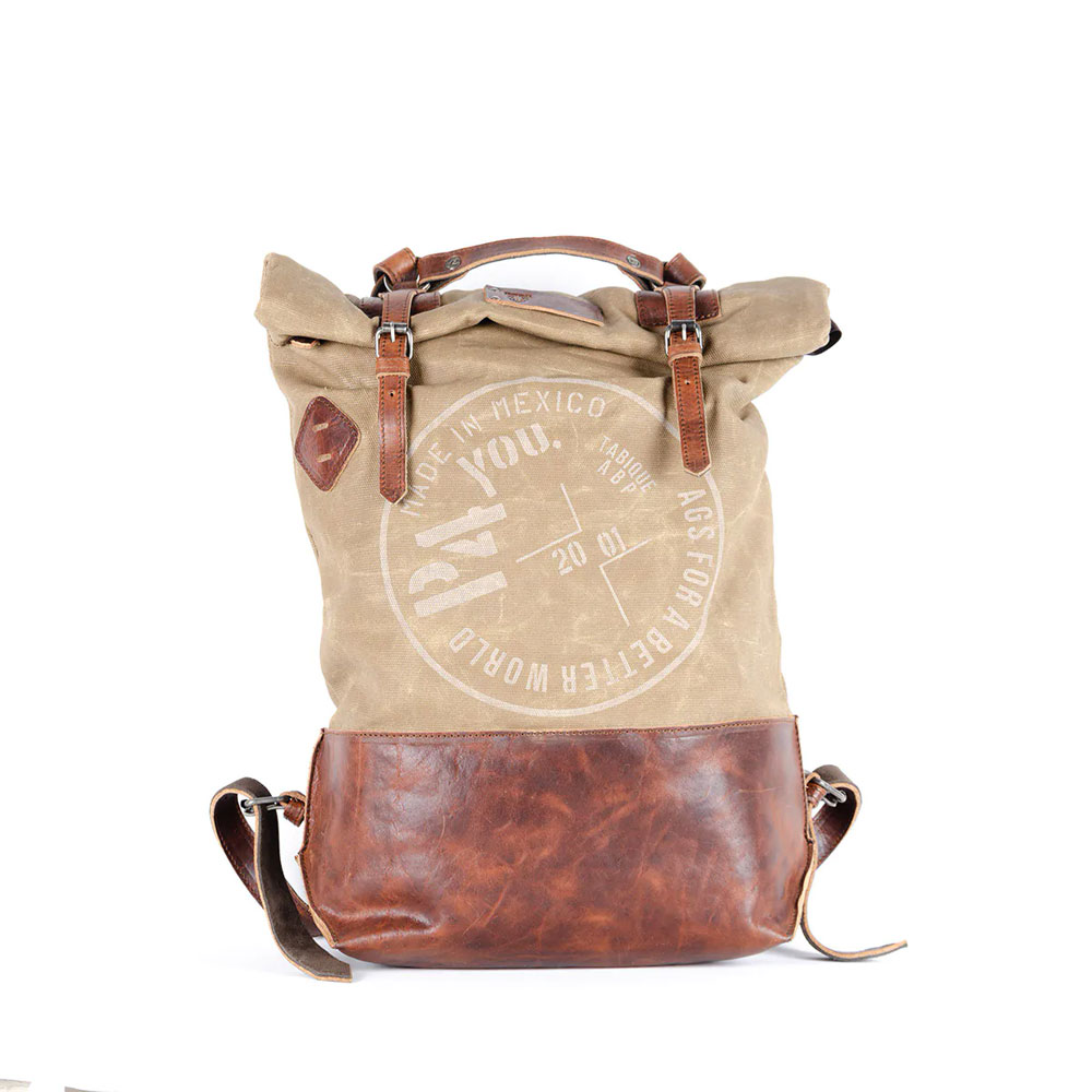 Canvas acabado vintage, colores negro, caqui, olivo y gris oxford. Piel 100% Bovino. Forro 100% algodón. Herraje Metálico reforzado y cierre ykk.