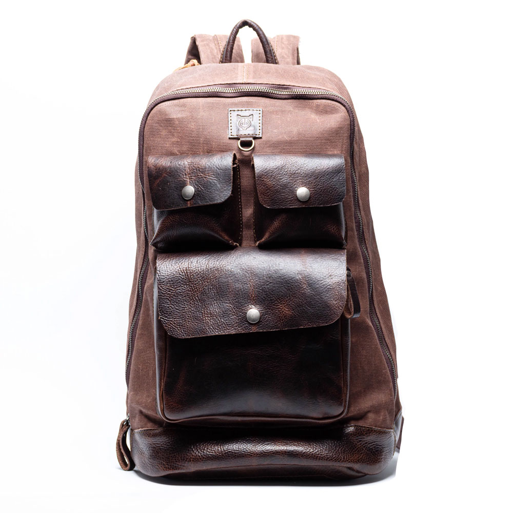 Canvas acabado vintage, colores negro, ladrillo, caqui, olivo y gris oxford. Piel 100% Bovino. Forro 100% algodón. Herraje Metálico reforzado y cierre ykk.