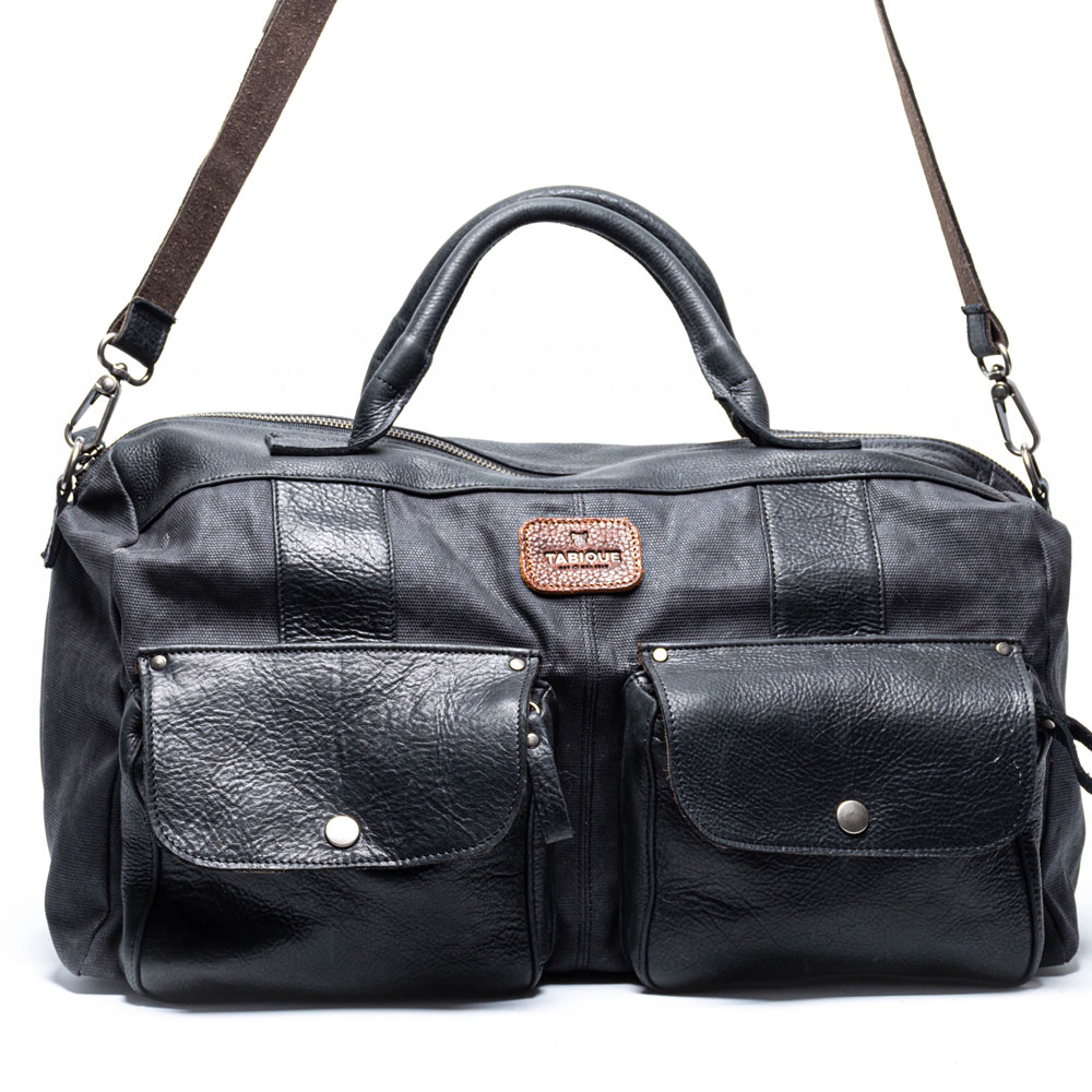 Canvas 100% algodón acabado tipo vintage, aplicaciones en piel 100% bovino tamboreada, forro 100% algodón, herraje metálico reforzado cierre ykk
